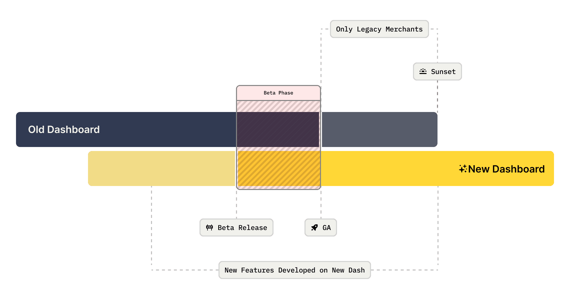 We knew the rollout would require careful planning. To keep momentum and unblock critical features, we intentionally descoped a few areas of legacy feature parity to accelerate our path to market. I proposed a phased approach that introduced a beta period, followed by a measured sunset window for legacy merchants once we reached general availability.